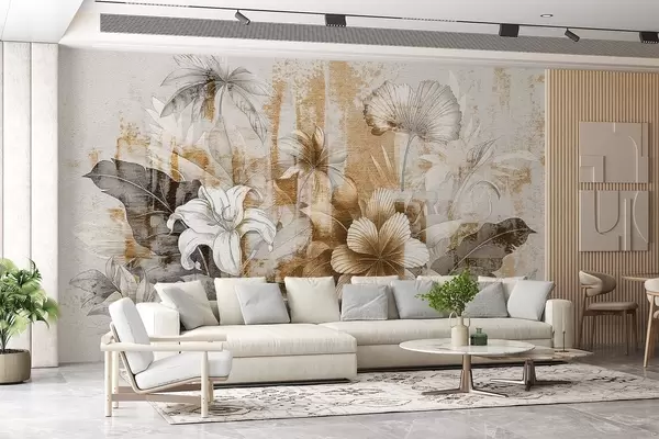 Fotobehang Vintage ontwerp met exotische bloemen en planten N° w08767