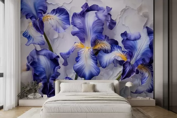 Fotobehang Witte en blauwe irissen in aquarelstijl N° w08816