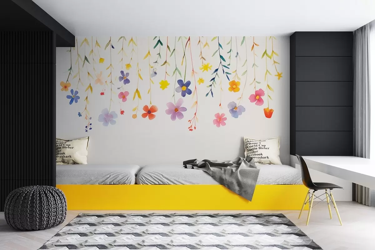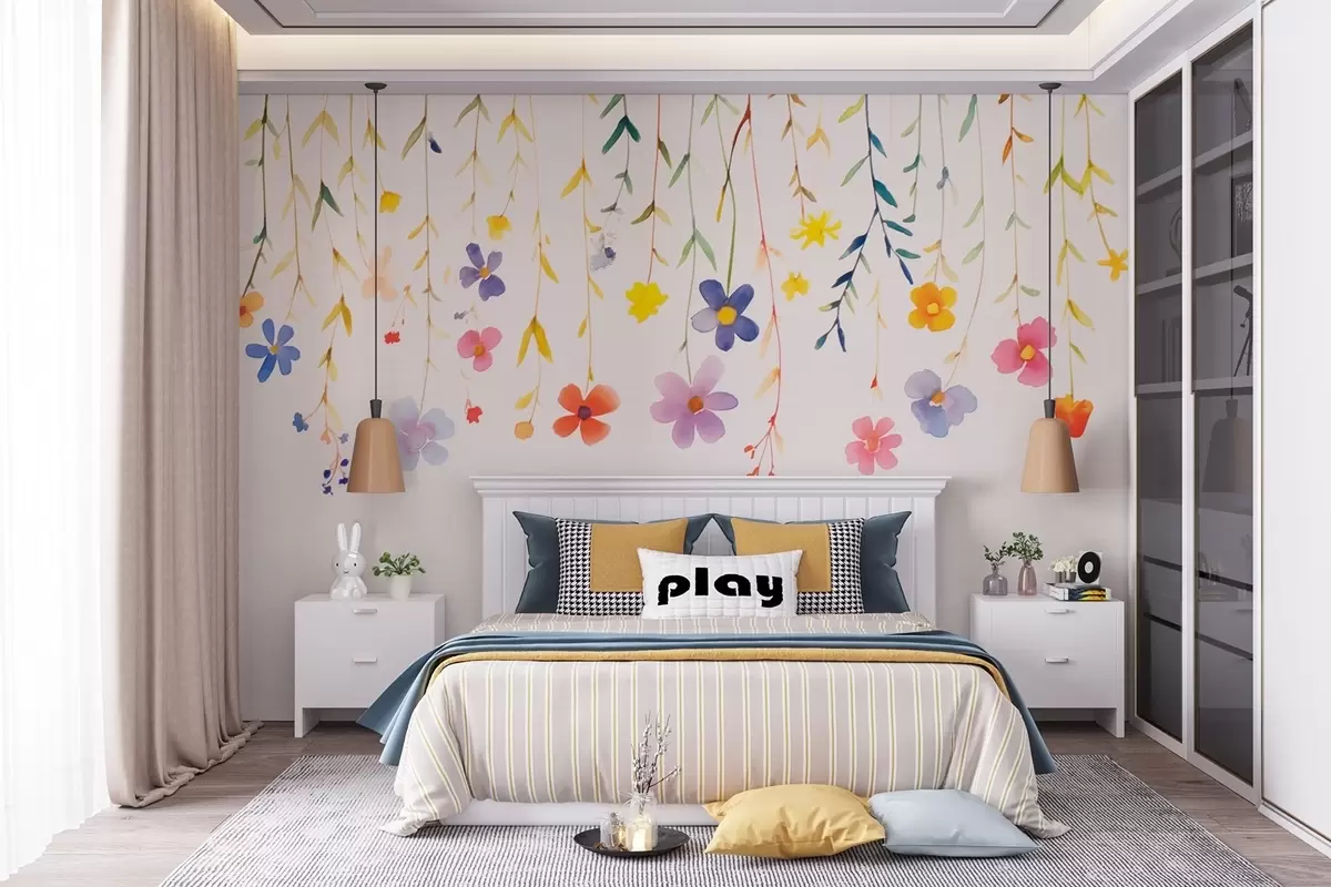 Fotobehang Wilde bloemen in aquarelstijl, eenvoudig en kleurrijk N° w08851