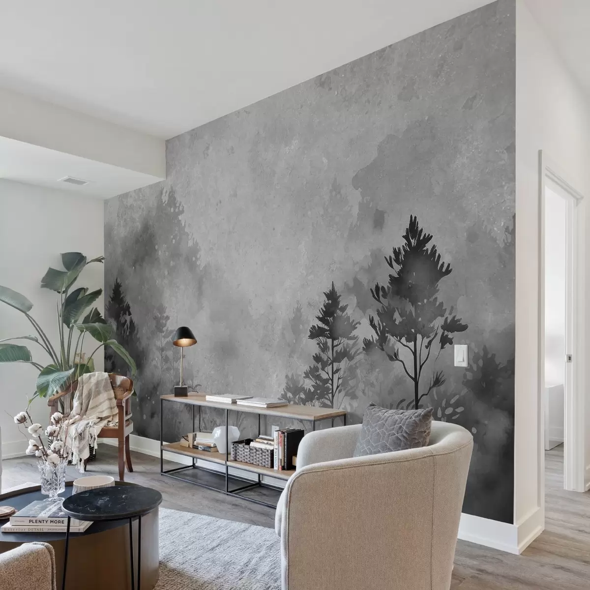 Fotobehang Bos, imitatie aquarel in zwart-wit stijl N° w08862v1