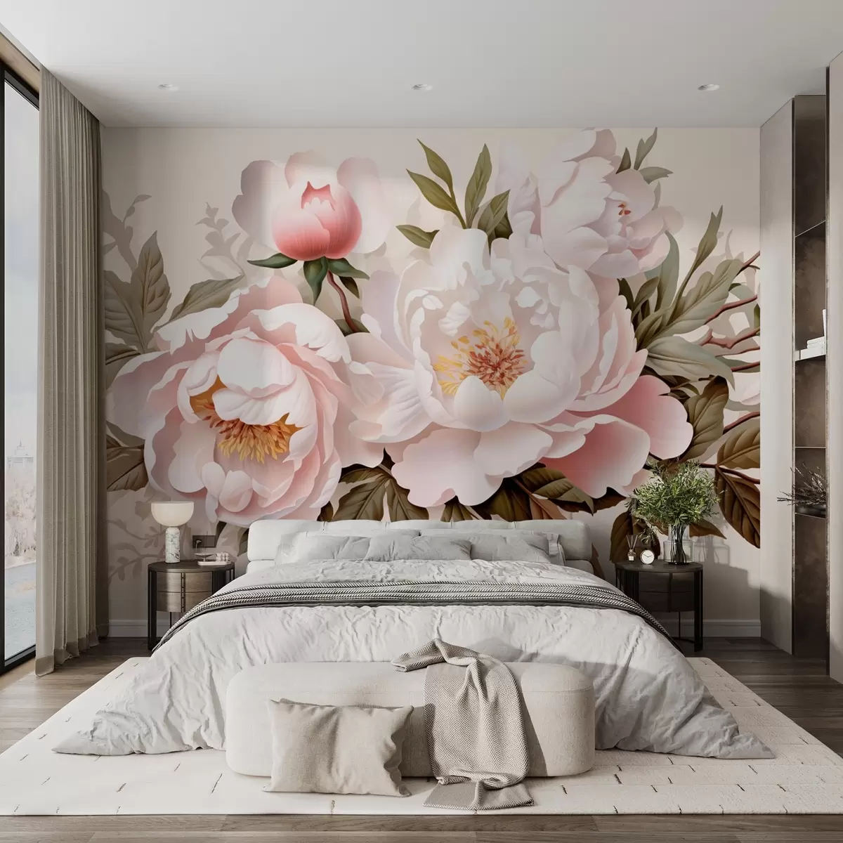 Fotobehang Lichtroze knoppen op een roze achtergrond N° w08884