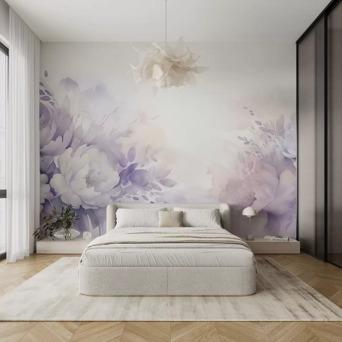 Fotobehang Grote delicate lila bloemen, imitatie van aquarel N° w08946