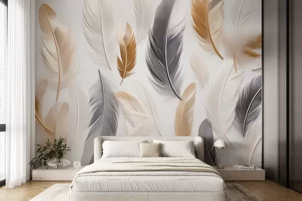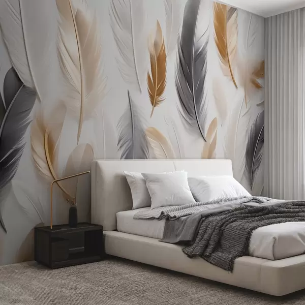 Fotobehang Beige-grijze veren in zachte, rustige tinten N° w08955