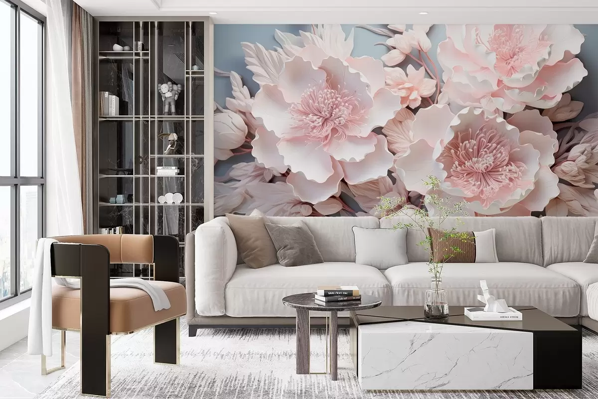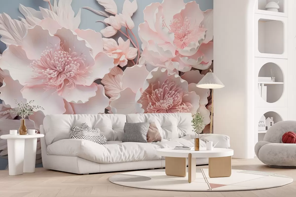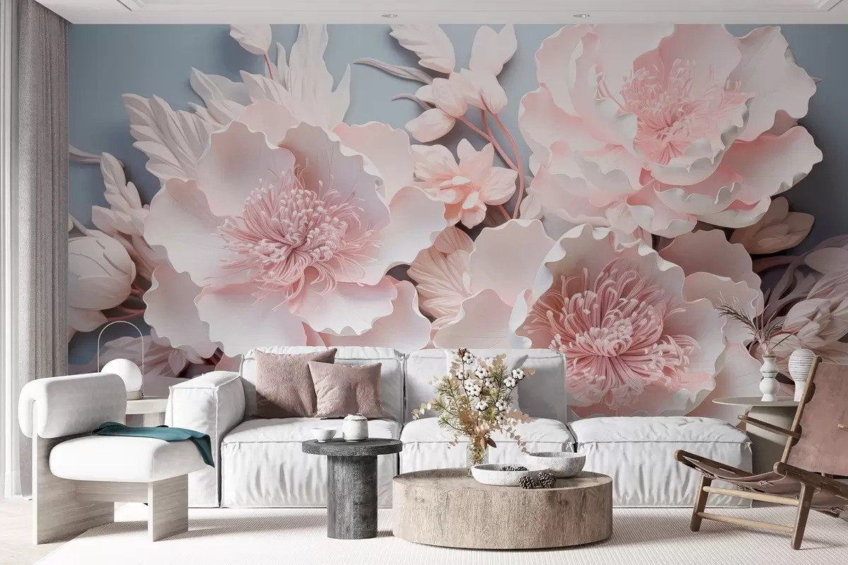 Fotobehang Volumineuze roze bloemen in delicate tinten N° w08988