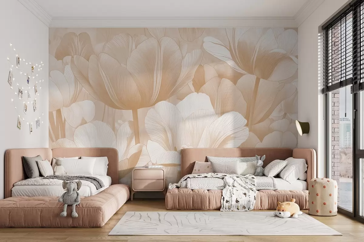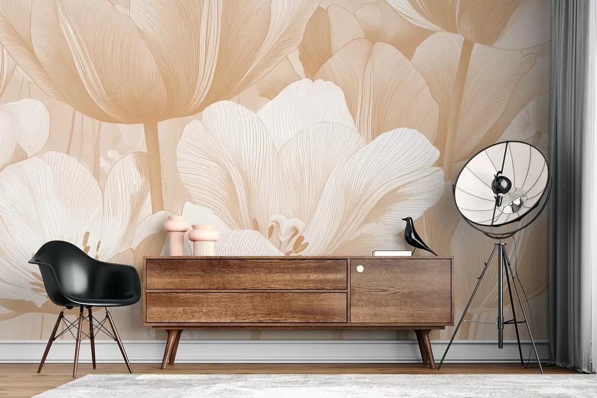 Fotobehang Beige klaprozen in lichte tinten N° w09099