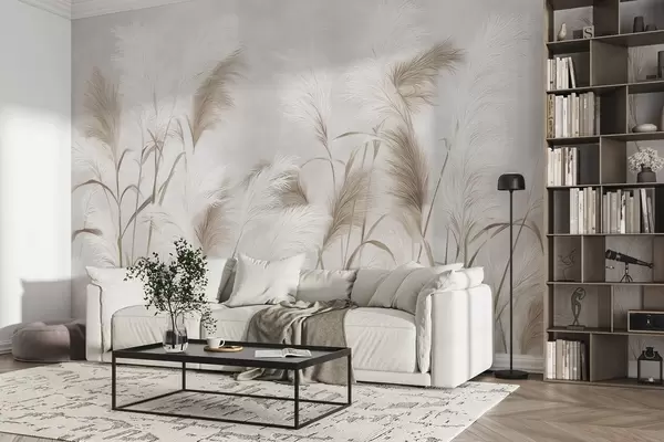 Fotobehang Sierlijk pampagras bloeit in grijze en bruine tinten N° w09150