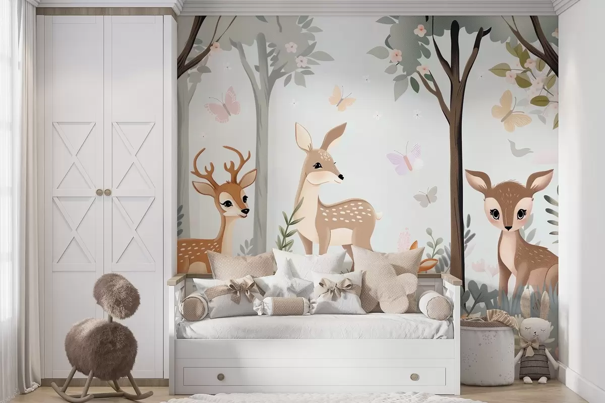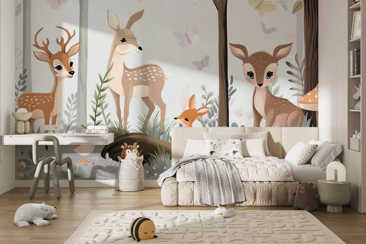 Fotobehang Grillige bosdieren in blauwe tinten N° w09227v1