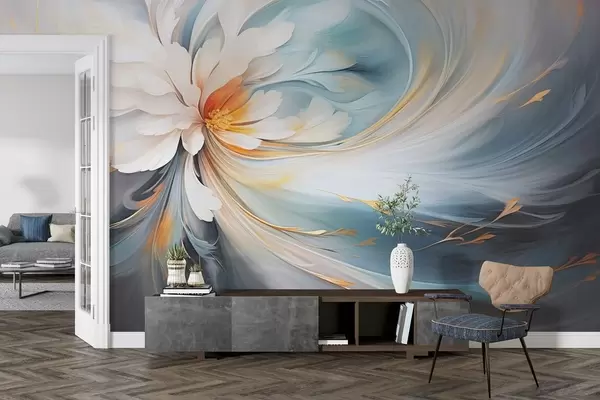 Fotobehang Abstracte bloem in zachte blauwe en oranje tinten N° w09270