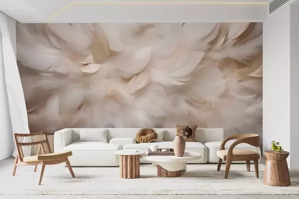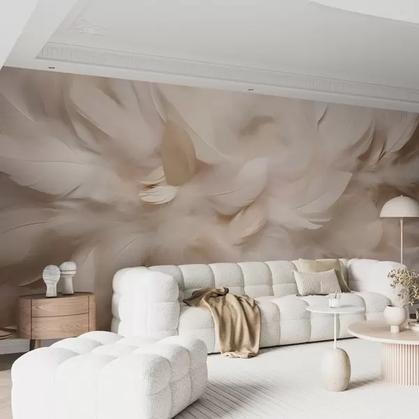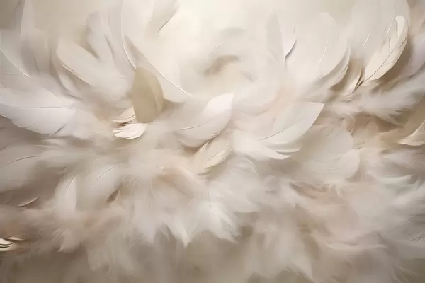 Fotobehang Pluizige veren en dons in crèmekleuren N° w09274