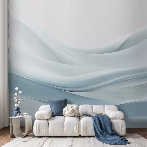 Fotobehang Blauwe stoffen golven in minimalistische abstracte stijl N° w09279v2