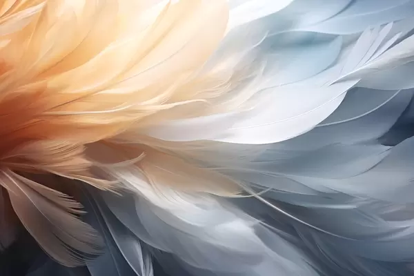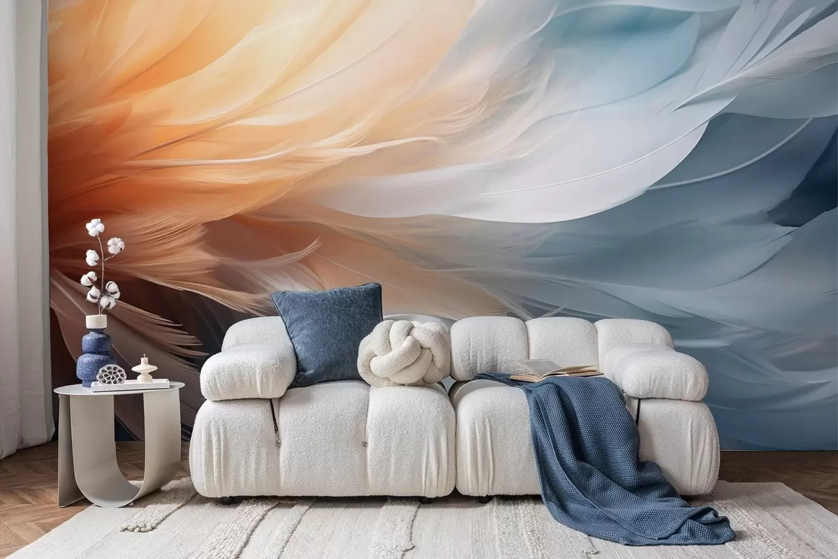 Fotobehang Delicate veren in oranje en blauwe verlooptinten N° w09282