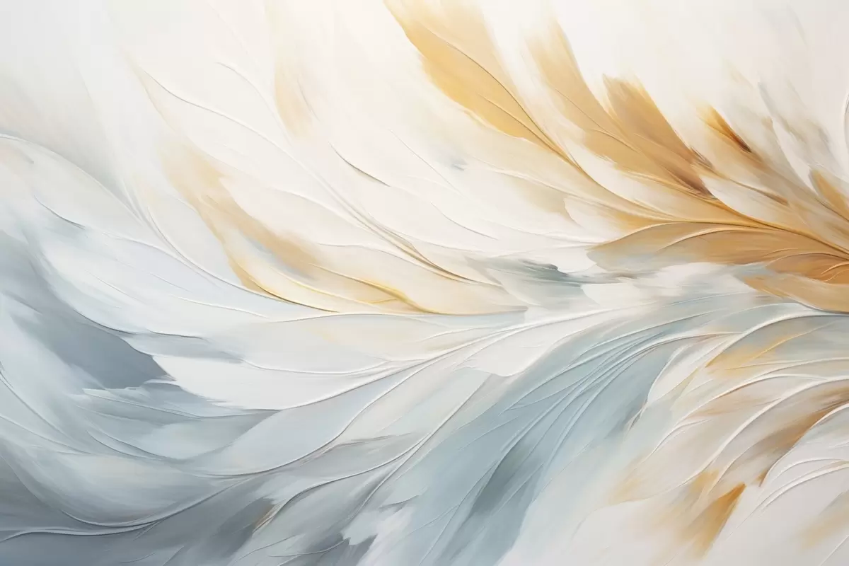 Fotobehang Abstracte veren in zachte blauwe en oranje tinten N° w09283