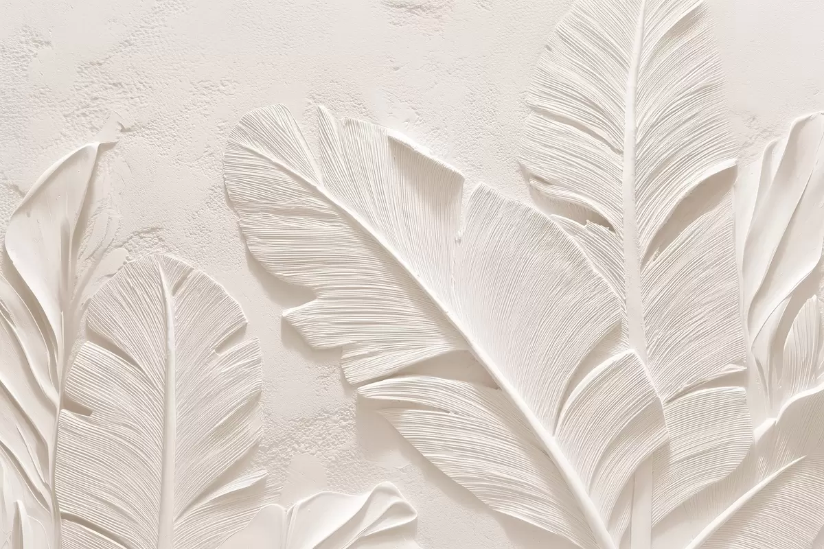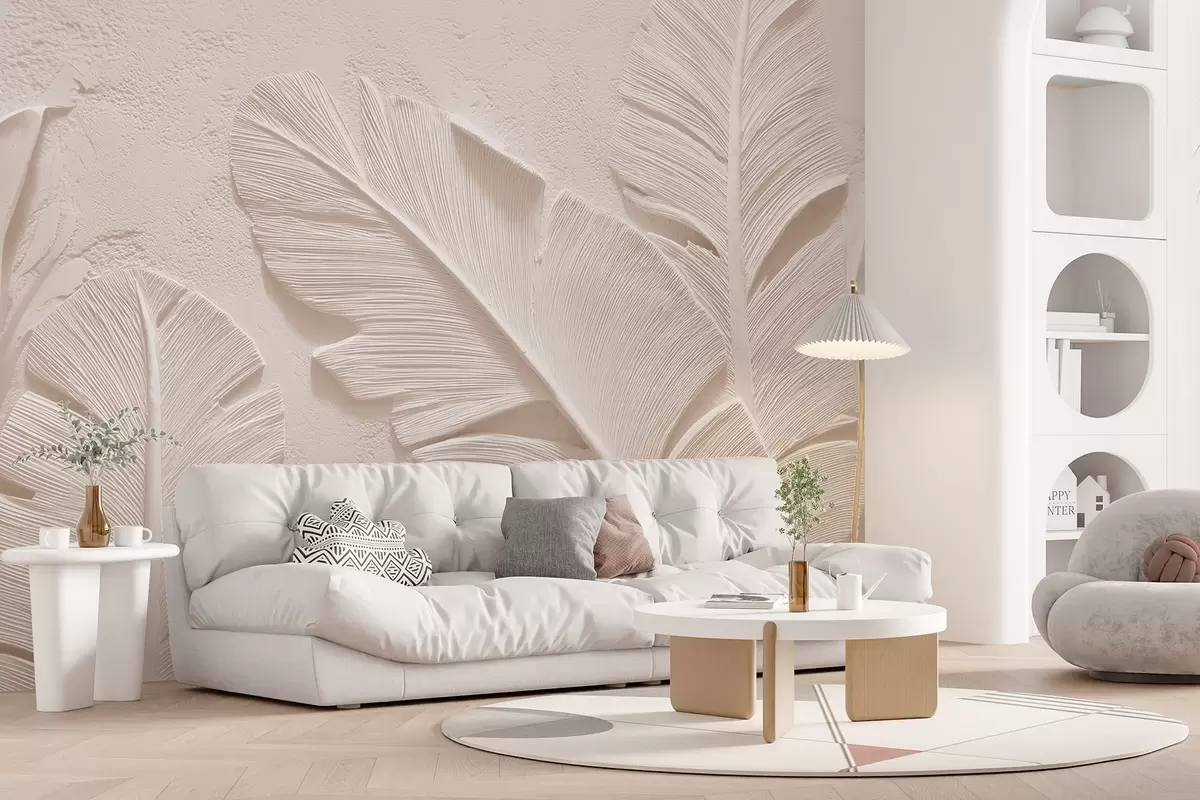 Fotobehang Reliëfbladeren in warme beige-zandtinten N° w09307v1