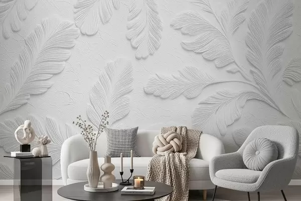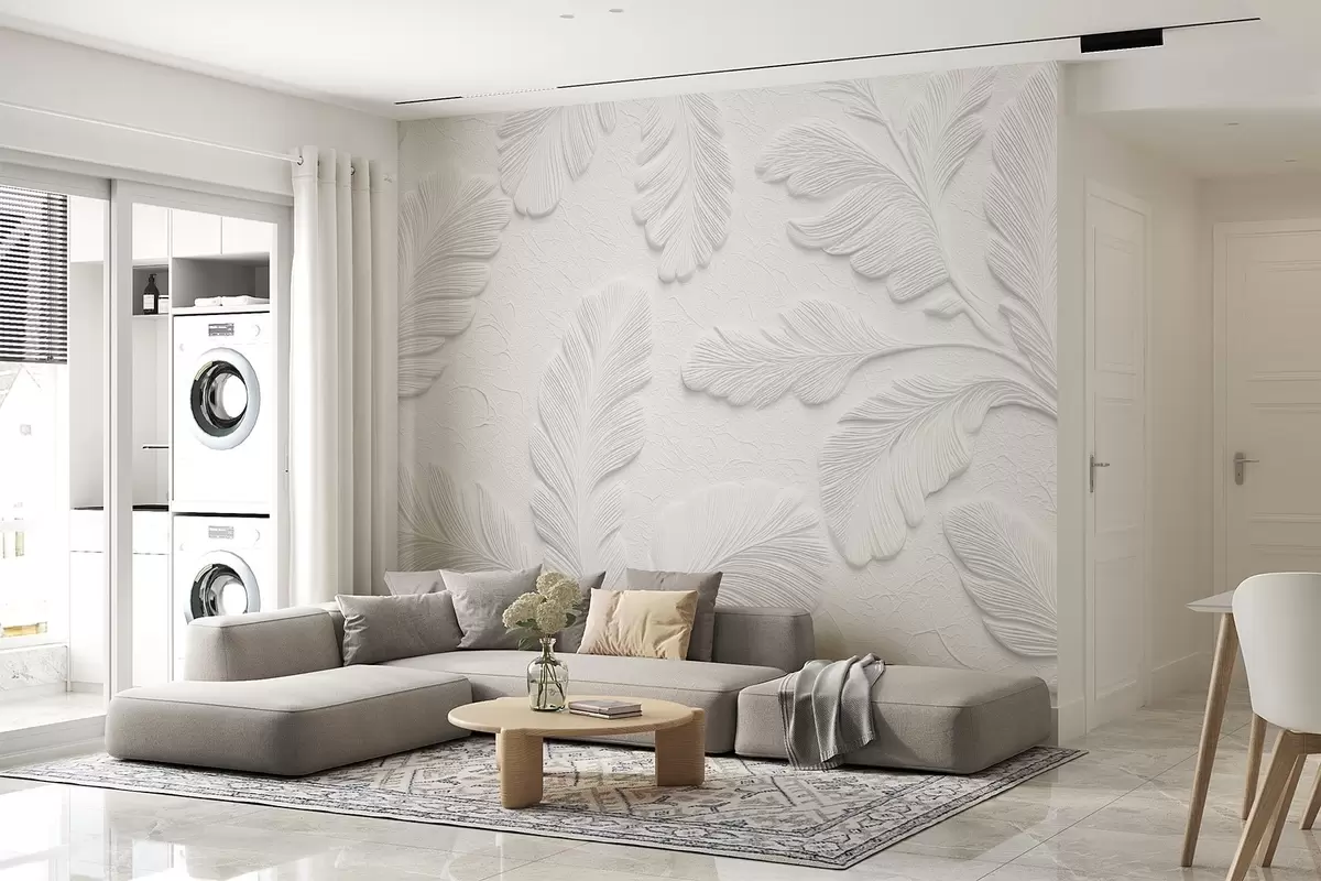 Fotobehang Reliëfblaadjes in grijs met een gebarsten textuureffect N° w09309v1