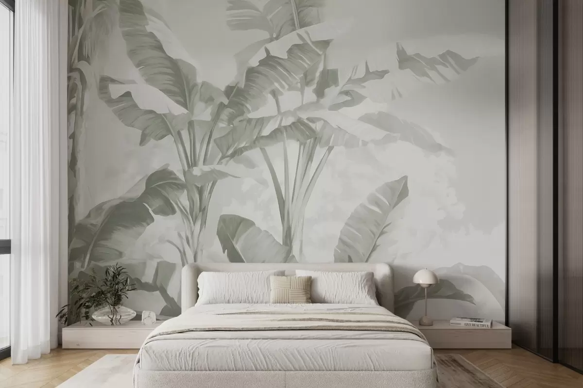 Fotobehang Tropische bananenbladeren in zachte groene tinten N° w09311v1