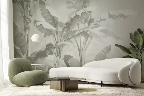 Fotobehang Tropische bananenbladeren in zachte groene tinten N° w09311v1