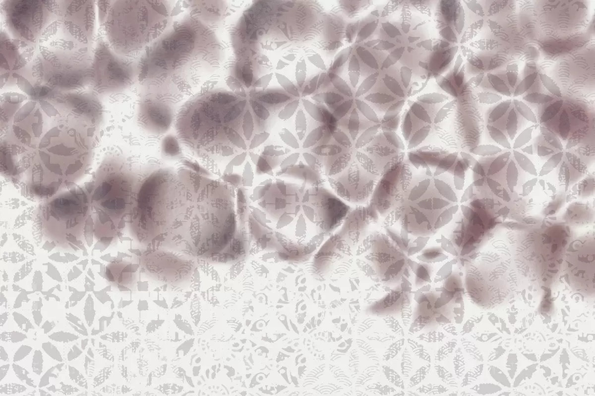 Fotobehang Abstract getextureerde kunst met bordo bloemenprint, vervaagd en onscherp effect, waardoor een zachte en dromerige sfeer ontstaat N° w09322v1