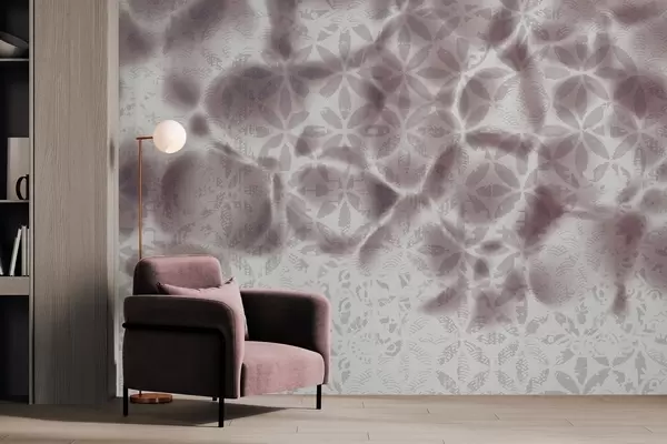 Fotobehang Abstract getextureerde kunst met bordo bloemenprint, vervaagd en onscherp effect, waardoor een zachte en dromerige sfeer ontstaat N° w09322v1