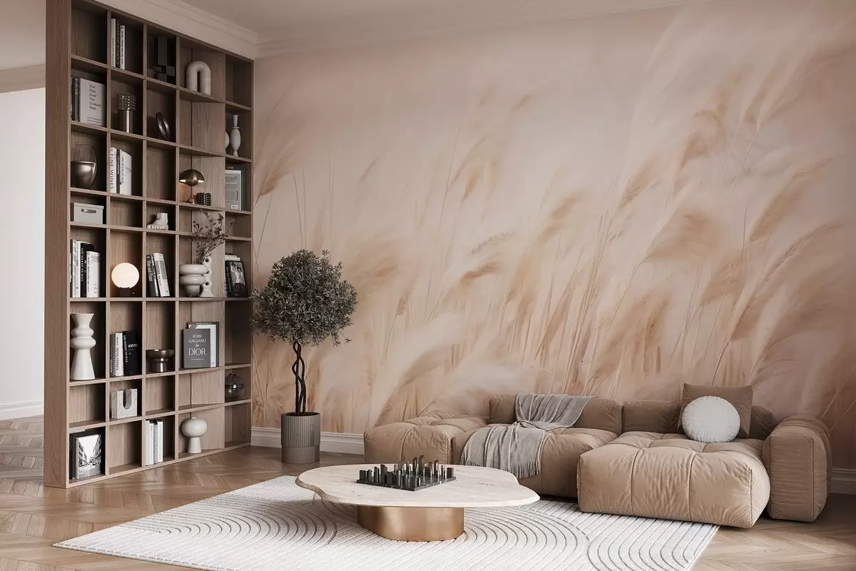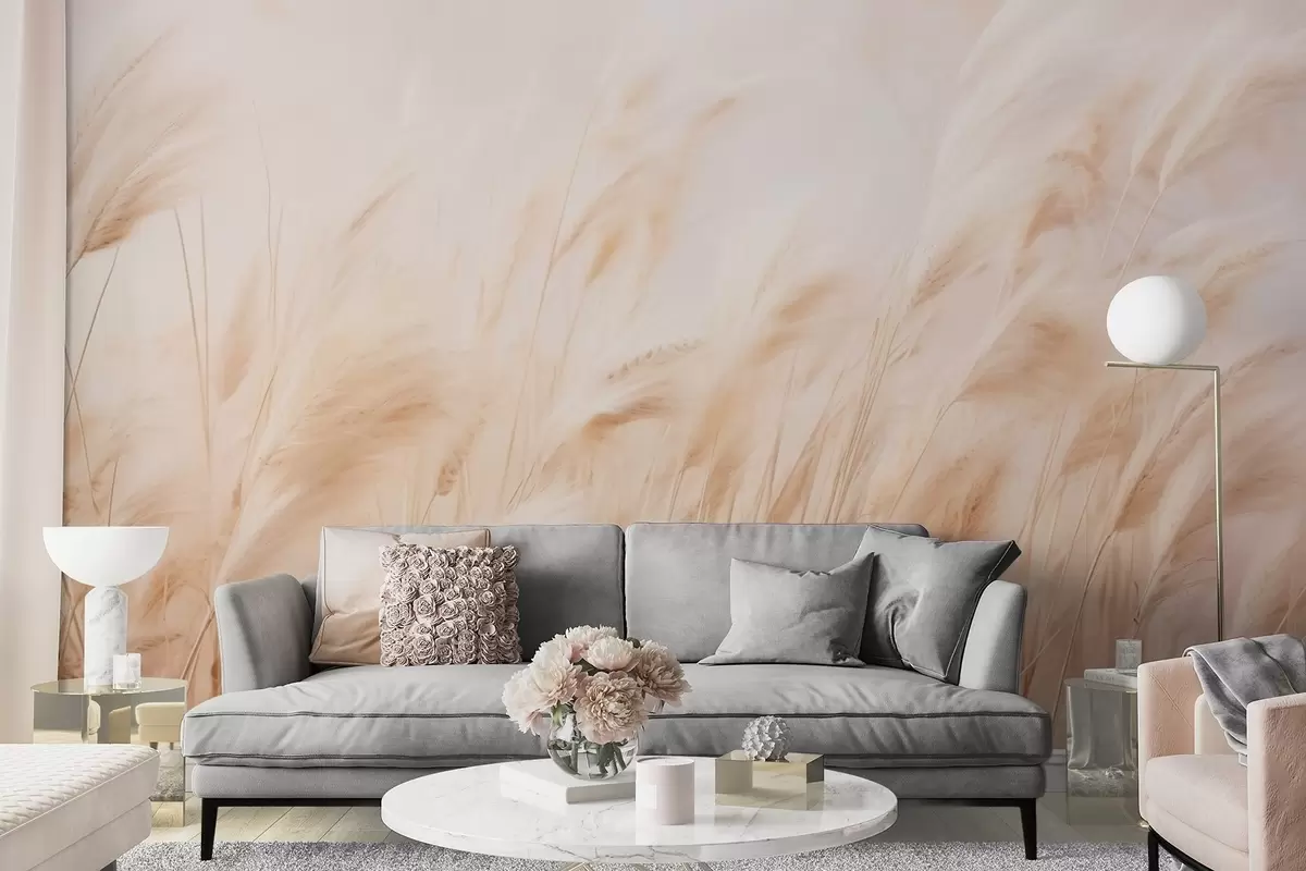 Fotobehang Zachte zwier van pampa's in zachte crèmekleurige en beige tinten N° w09330