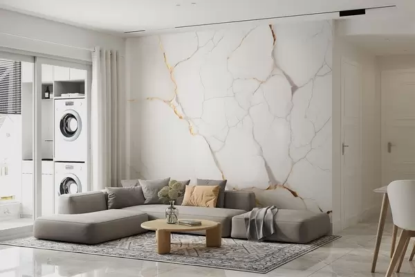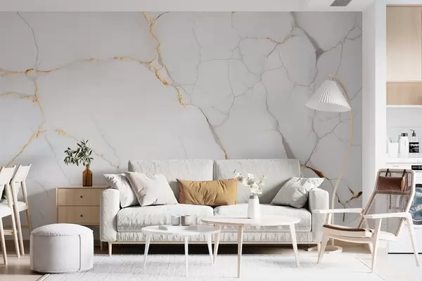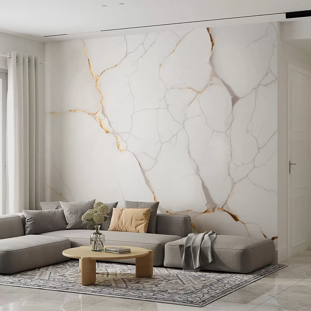 Fotobehang Imitatie van marmer met fijne barstjes en gele aders N° w09390