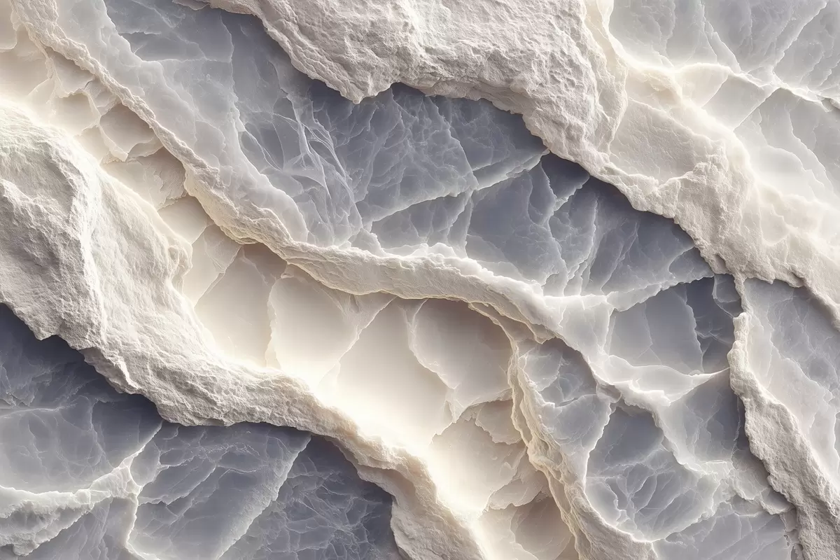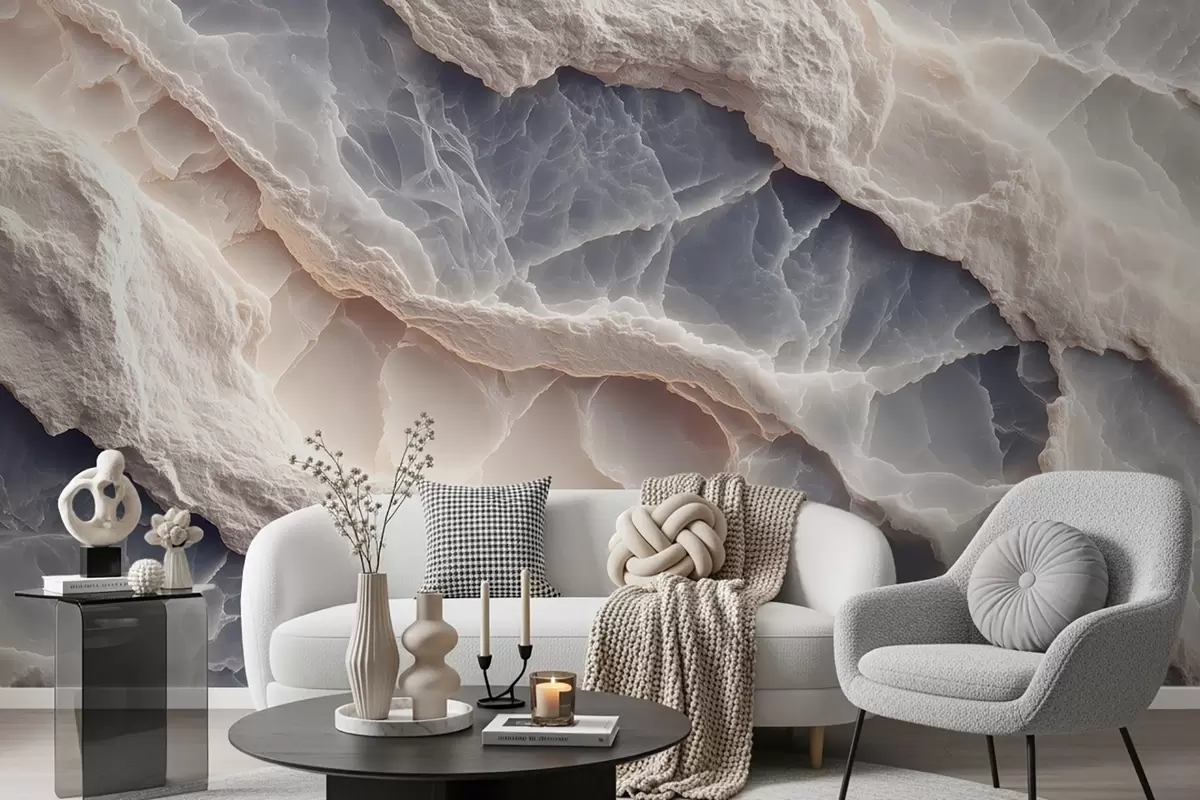 Fotobehang Elegante abstractie in de stijl van marmerlagen en mineralen in blauw-beige kleur N° w09408