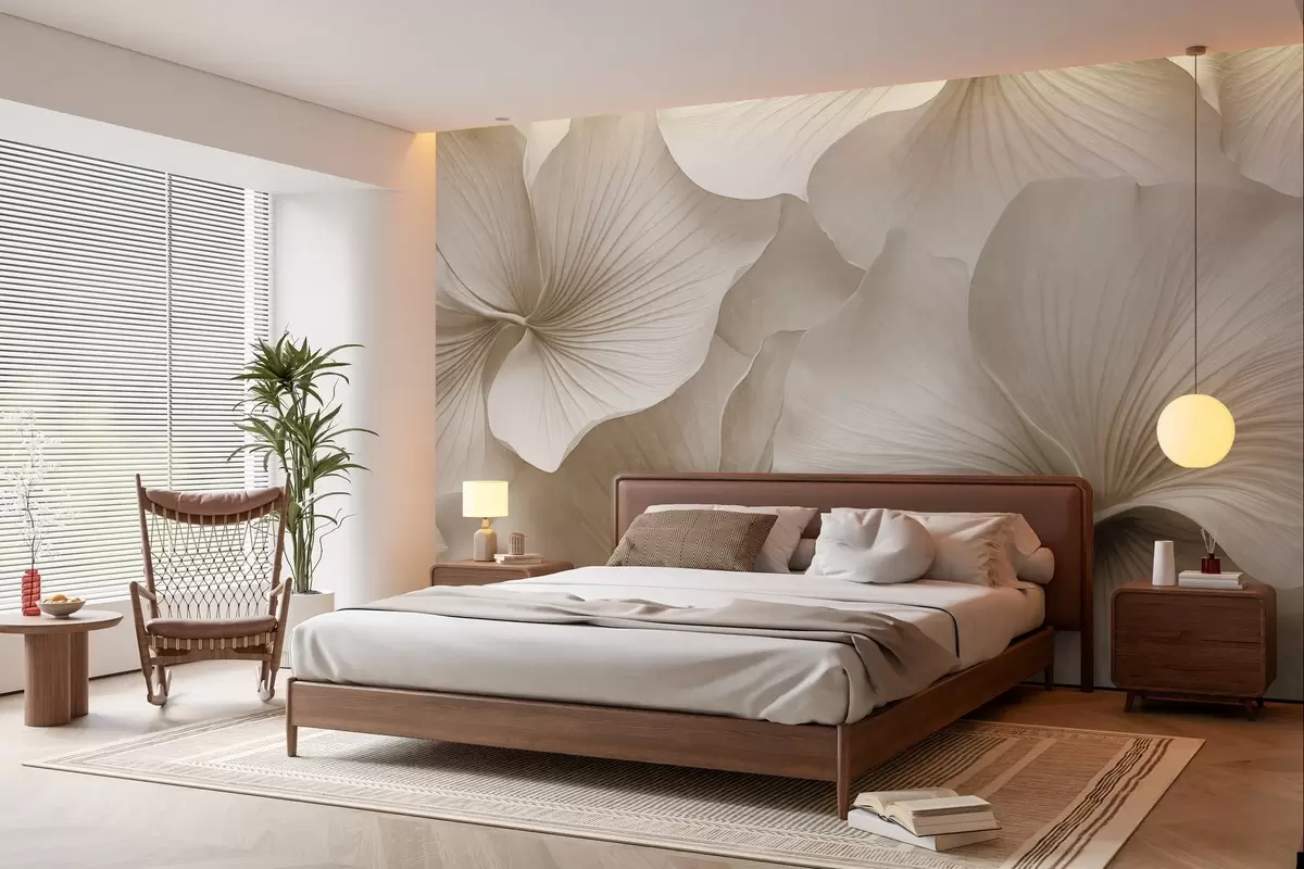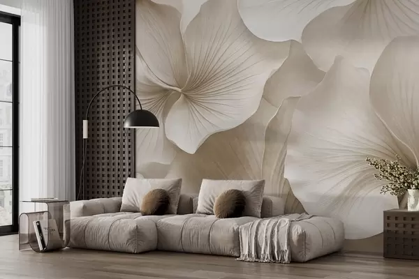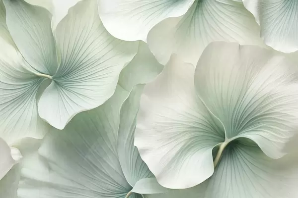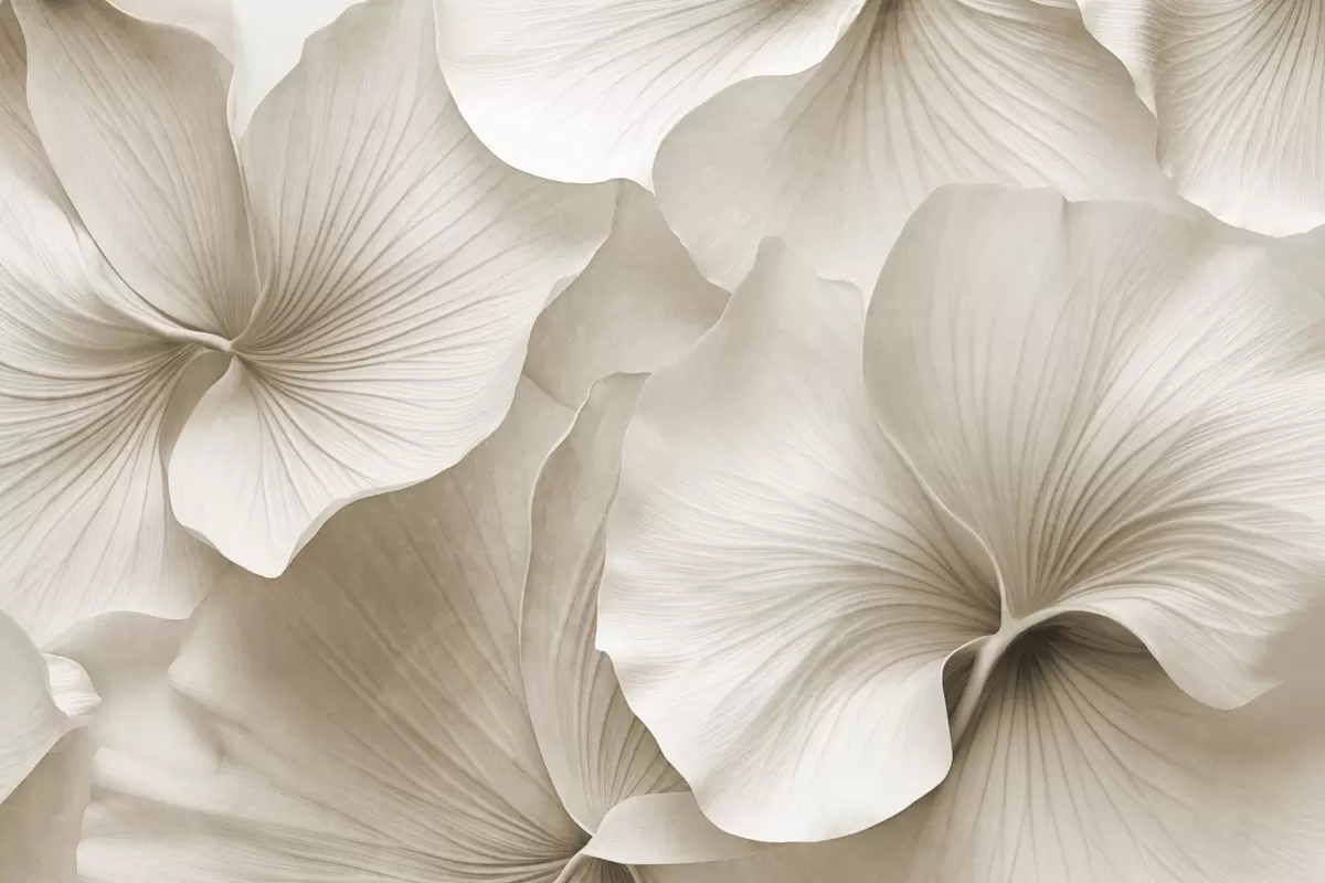 Fotobehang Witte en beige ginkgobladeren, zachte textuur, abstracte bloemenachtergrond, minimalistische moderne stijl N° w09421v1