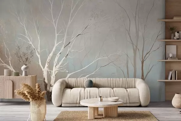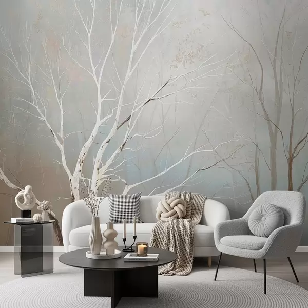 Fotobehang Lichte takken in ochtendmist in pasteltinten N° w09447