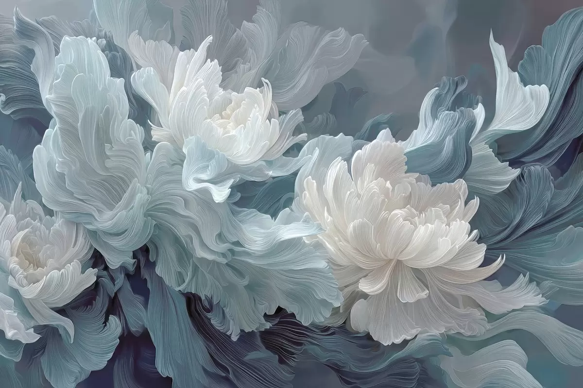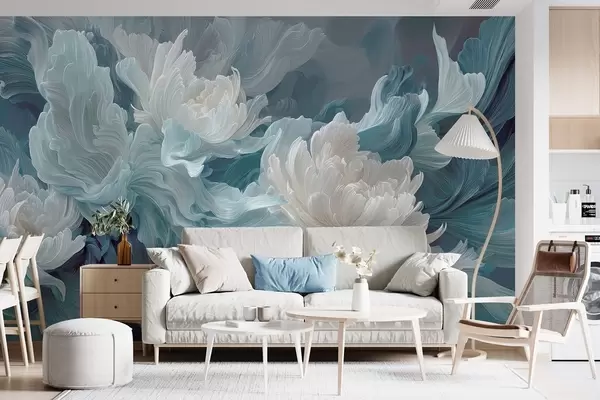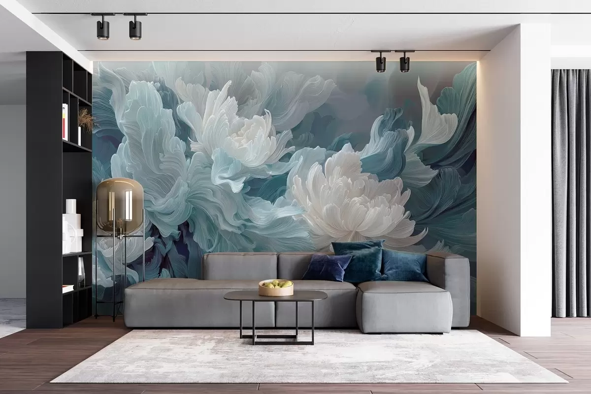 Fotobehang Abstracte bloemen in blauwe en turquoise tinten N° w09452