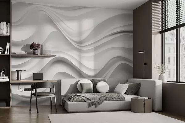 Fotobehang Zwart-witte abstracte 3D-compositie met vloeiende golven N° w09506