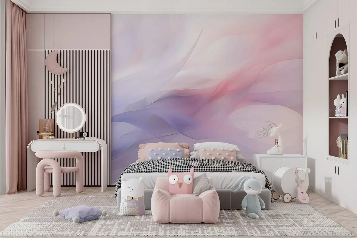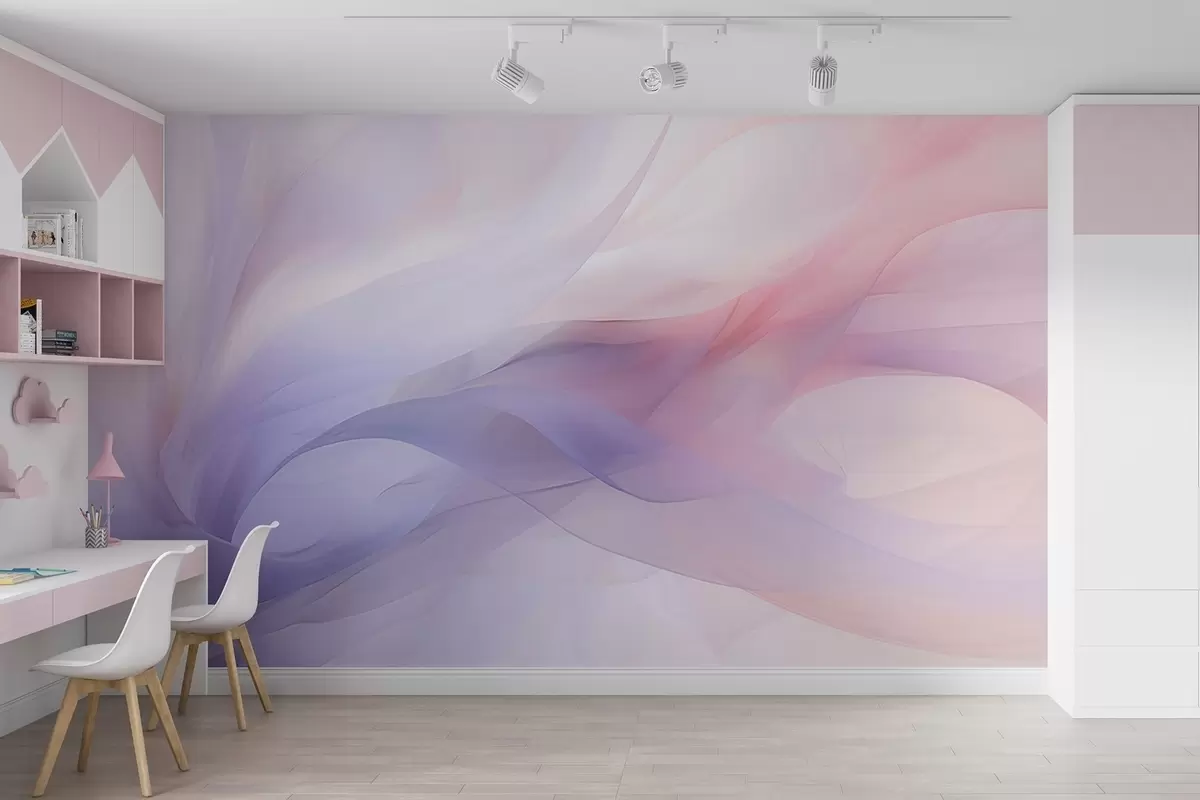 Fotobehang Zachte abstracte golven in blauwe en roze tinten N° w09508