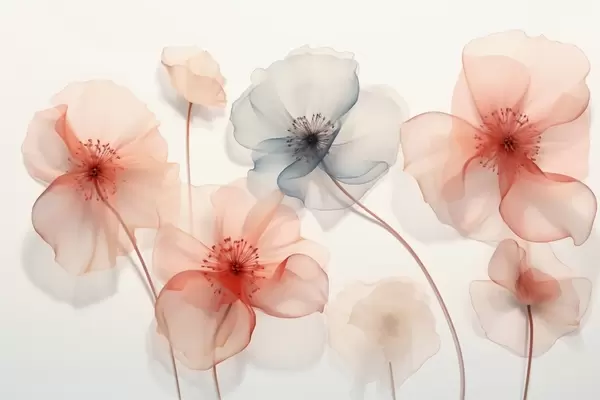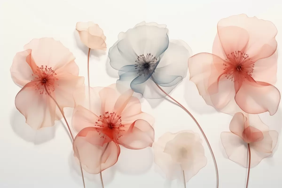 Fotobehang Doorschijnende bloemen in rode en blauwe tinten N° w09515
