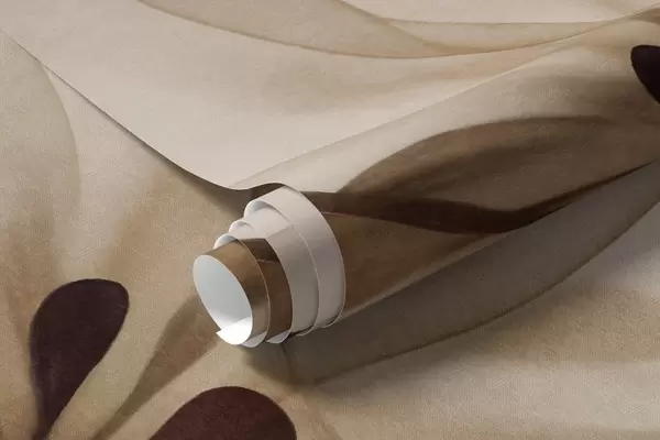 Fotobehang Doorschijnende bloemen met bruine en groene bloemblaadjes, lange stelen, lichte achtergrond, zachte kleuren, bloemmotief met textuur N° w09529