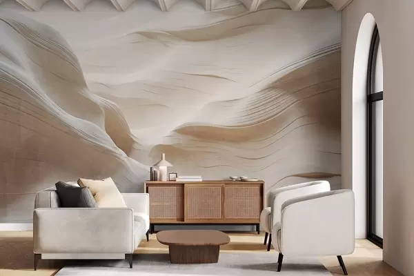 Fotobehang Zandstenen canyonwanden met gladde, vloeiende rondingen en texturen, natuurlijke schoonheid, minimalisme N° w09533