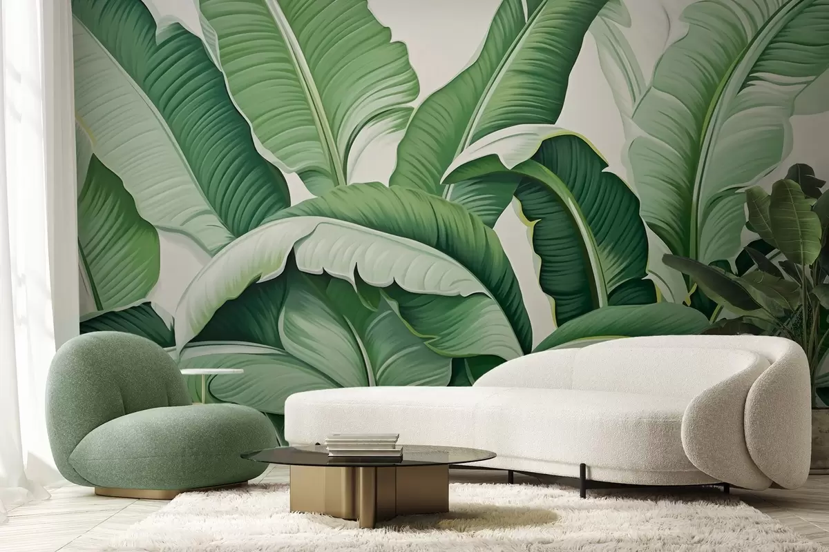 Fotobehang Groene tropische bananenbladeren met een 3D-effect N° w09559
