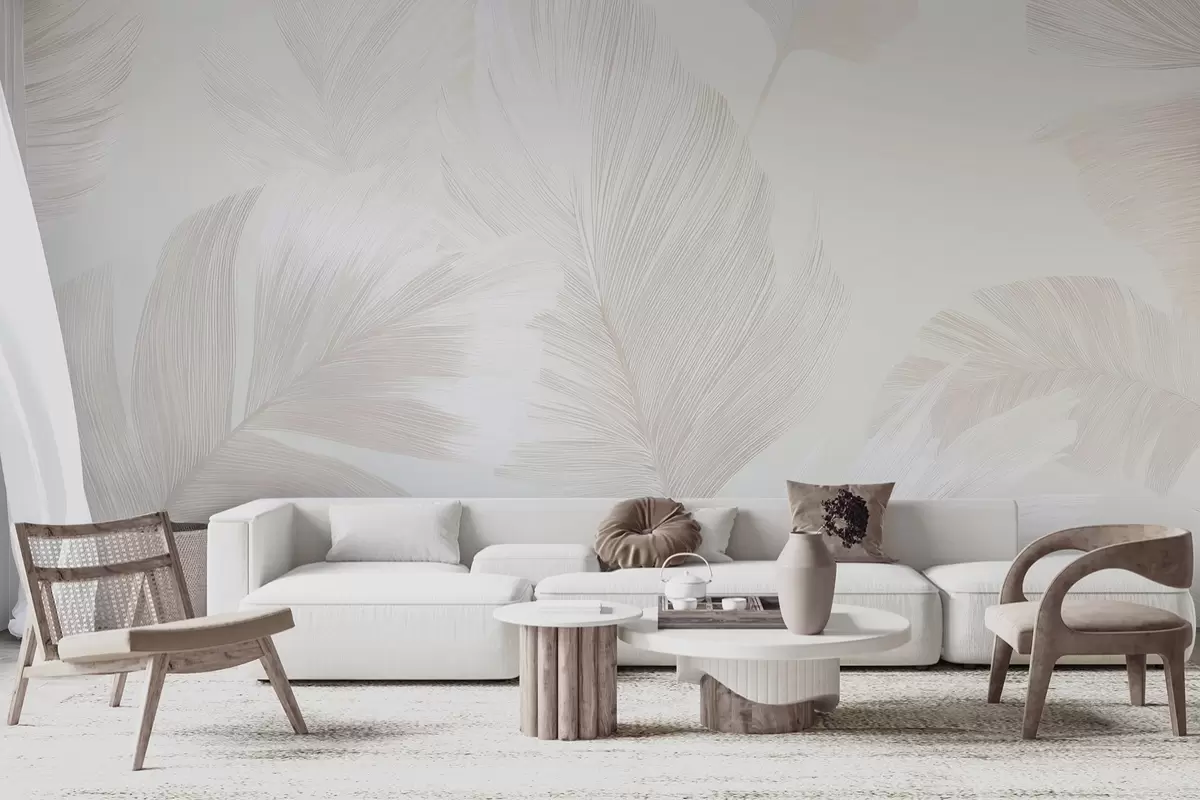 Fotobehang Zachte ivoorkleurige veren in melkachtige beige tinten N° w09563