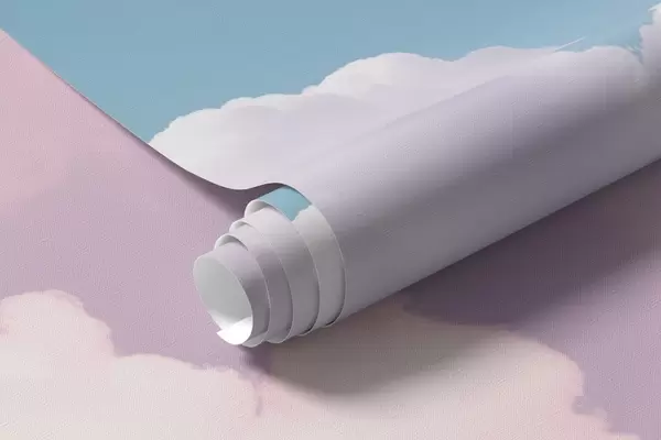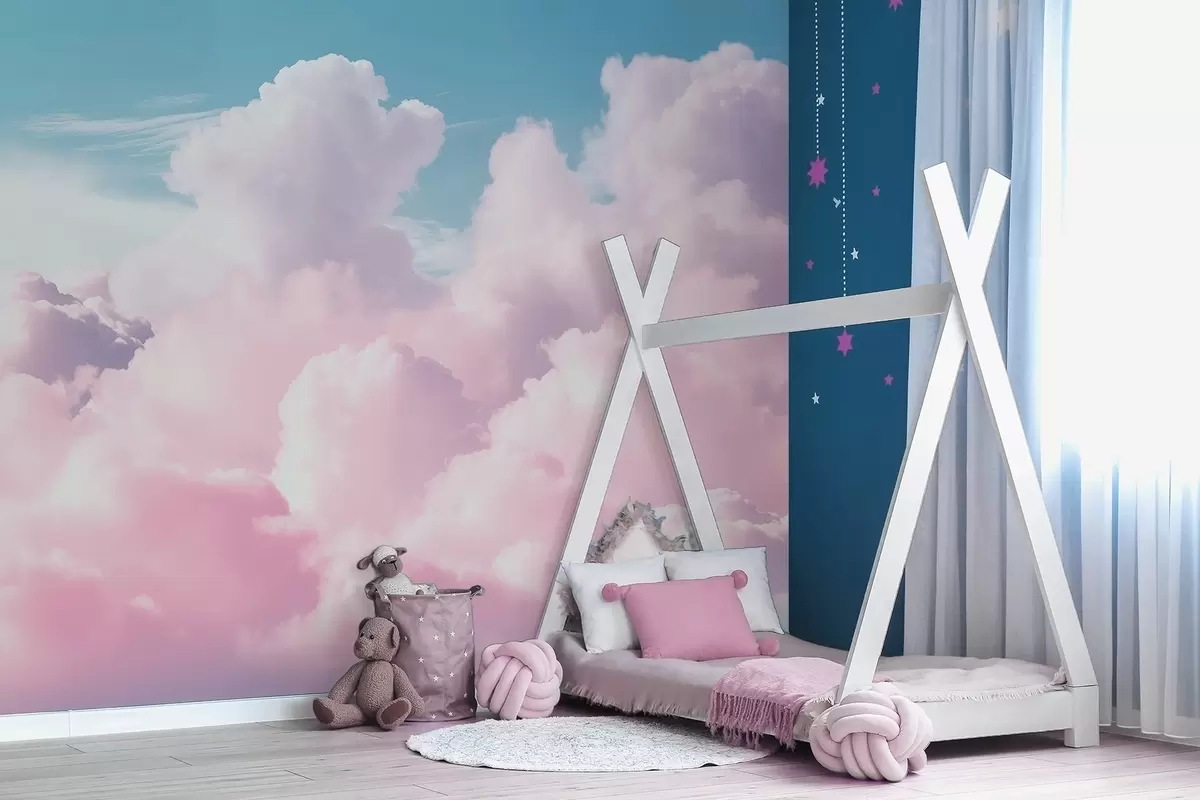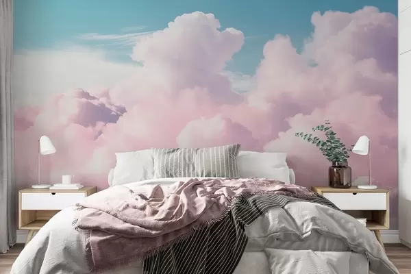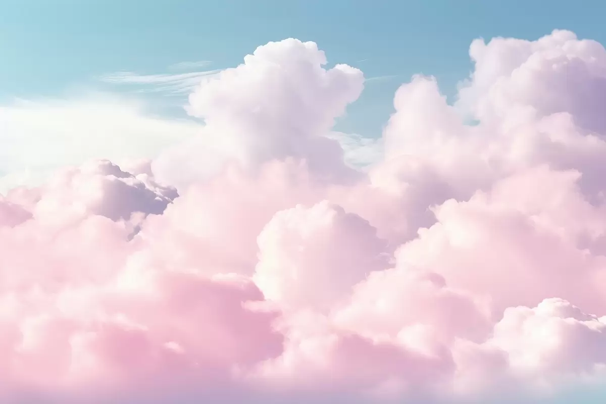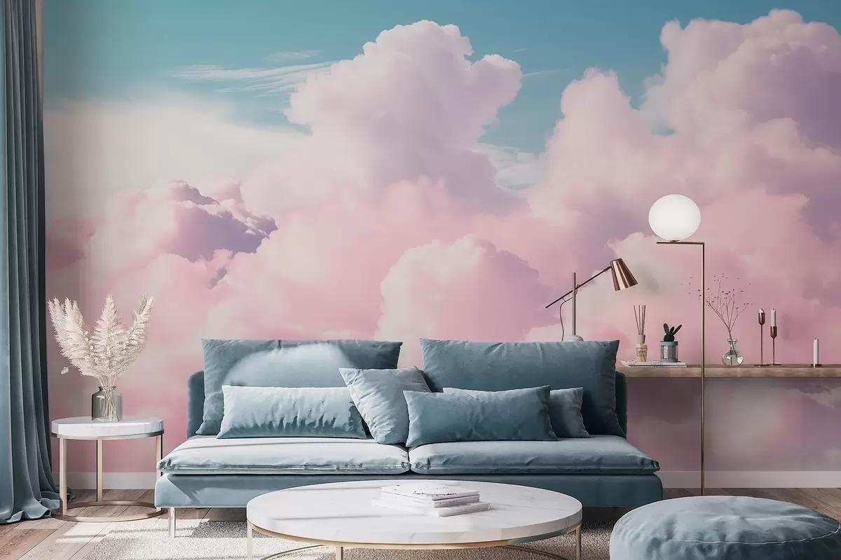 Fotobehang Zachte, luchtige roze wolken in een blauwe lucht N° w09569