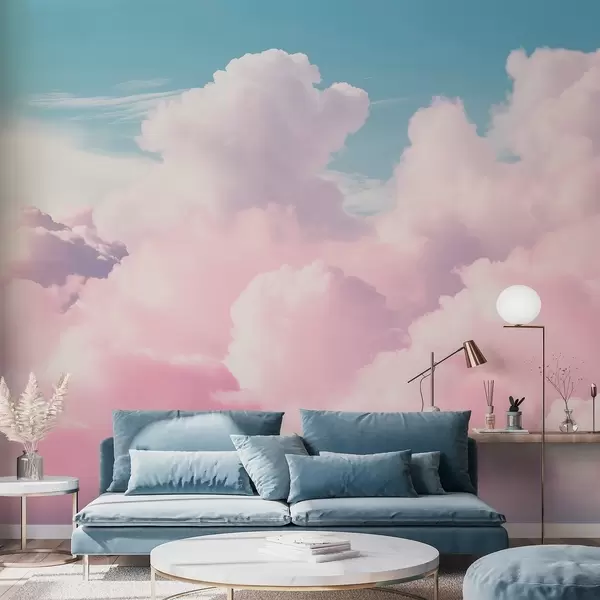 Fotobehang Zachte, luchtige roze wolken in een blauwe lucht N° w09569