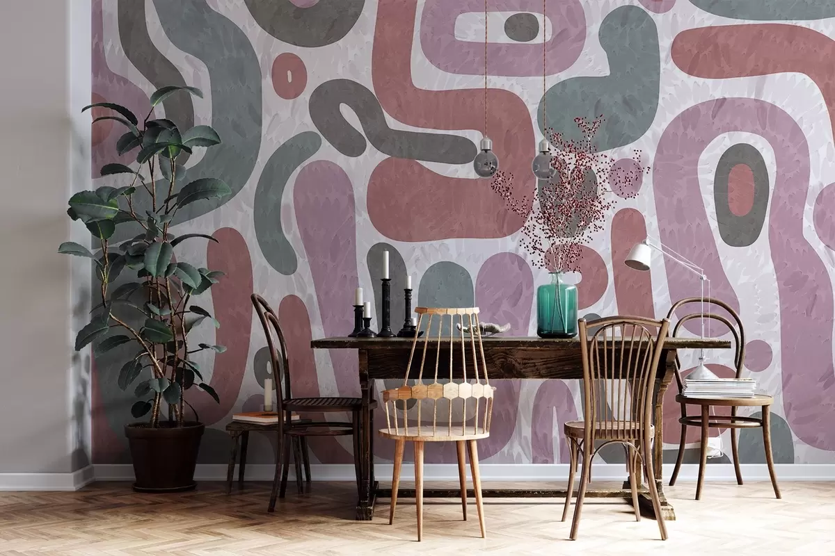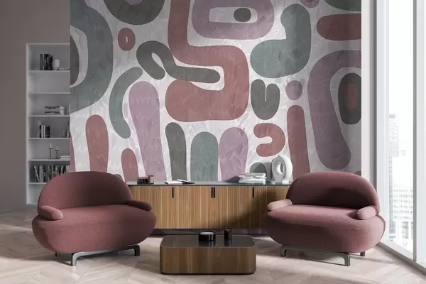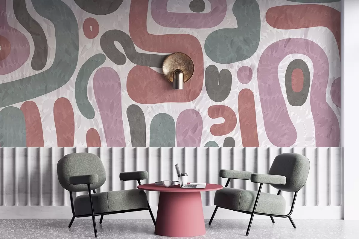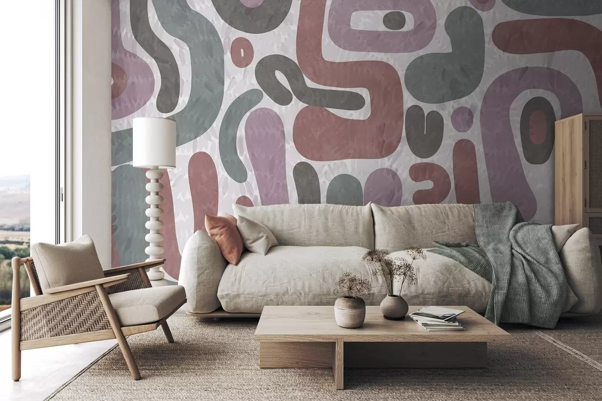Fotobehang Abstracte vormen met textuur in gedempte roze, groene en grijze tinten, op een achtergrond met textuur moderne kunst N° w09622
