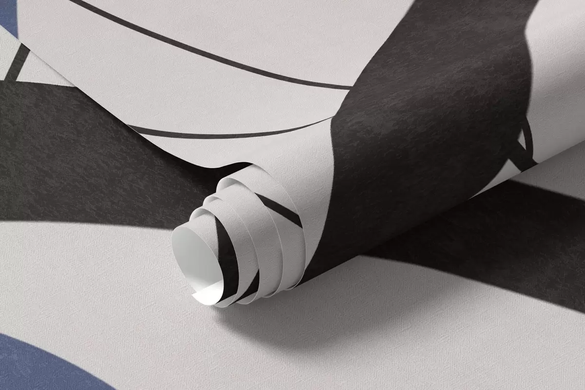 Fotobehang Abstracte blauwe bloemen met textuur en witte en zwarte vormen tegen een lichtbeige achtergrond, minimalistische kunst N° w09645