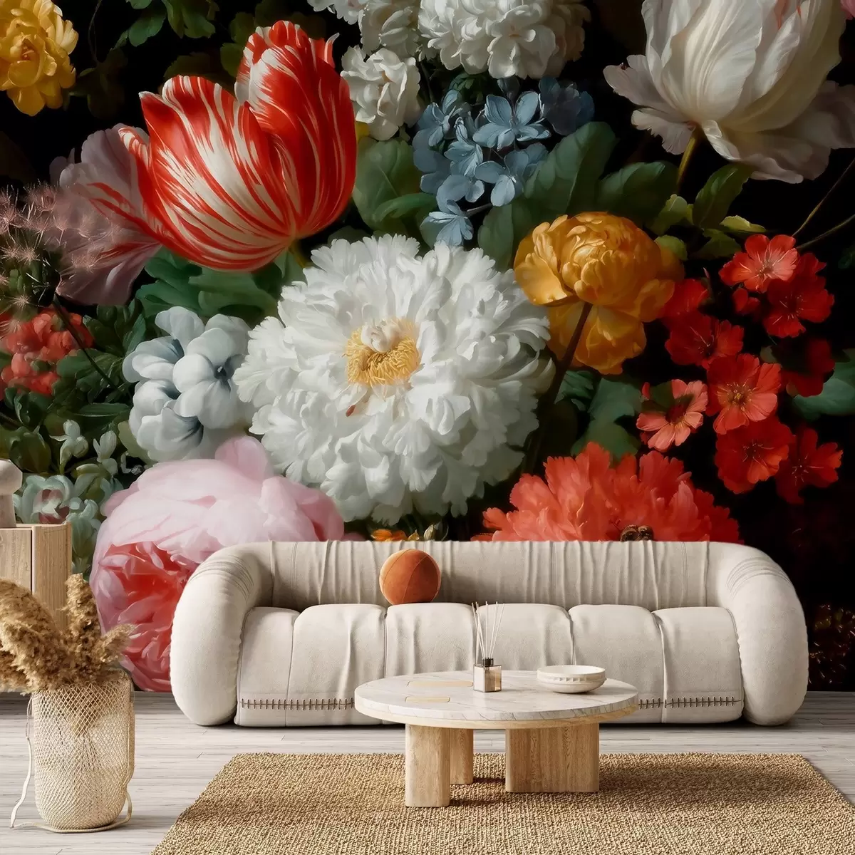 Fotobehang Weelderig bloemstuk in de stijl van een lentetuin N° w09676