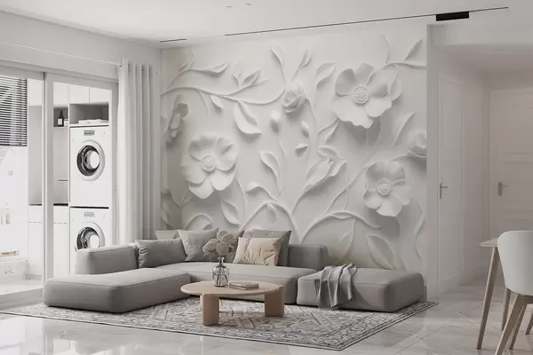Fotobehang Grijs reliëf bloemenornament N° w09710