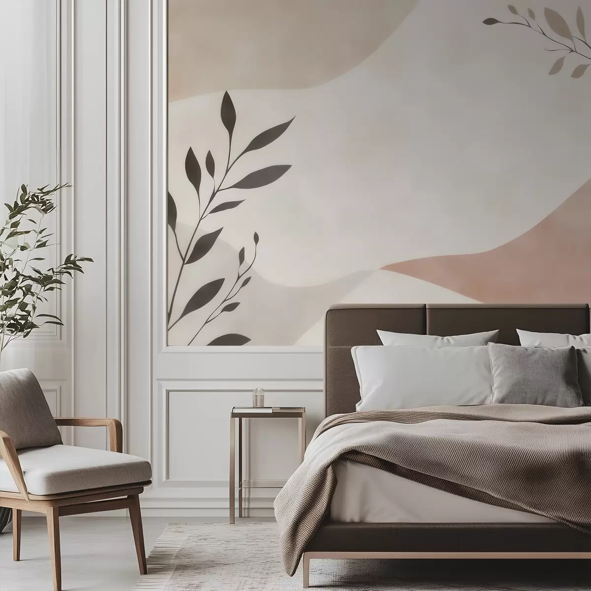 Fotobehang Abstracte beige-perzikkleurige golven met takken N° w09722