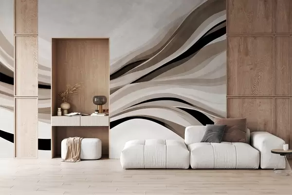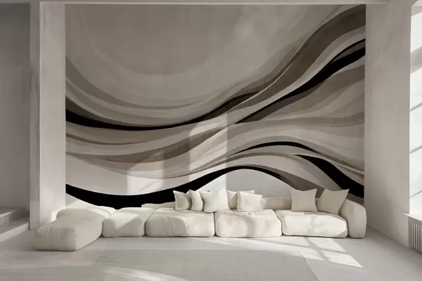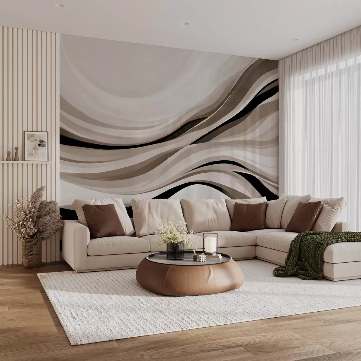Fotobehang Abstracte golvende lijnen in beige en zwarte tinten tegen een lichte achtergrond, kunst met textuur N° w09748