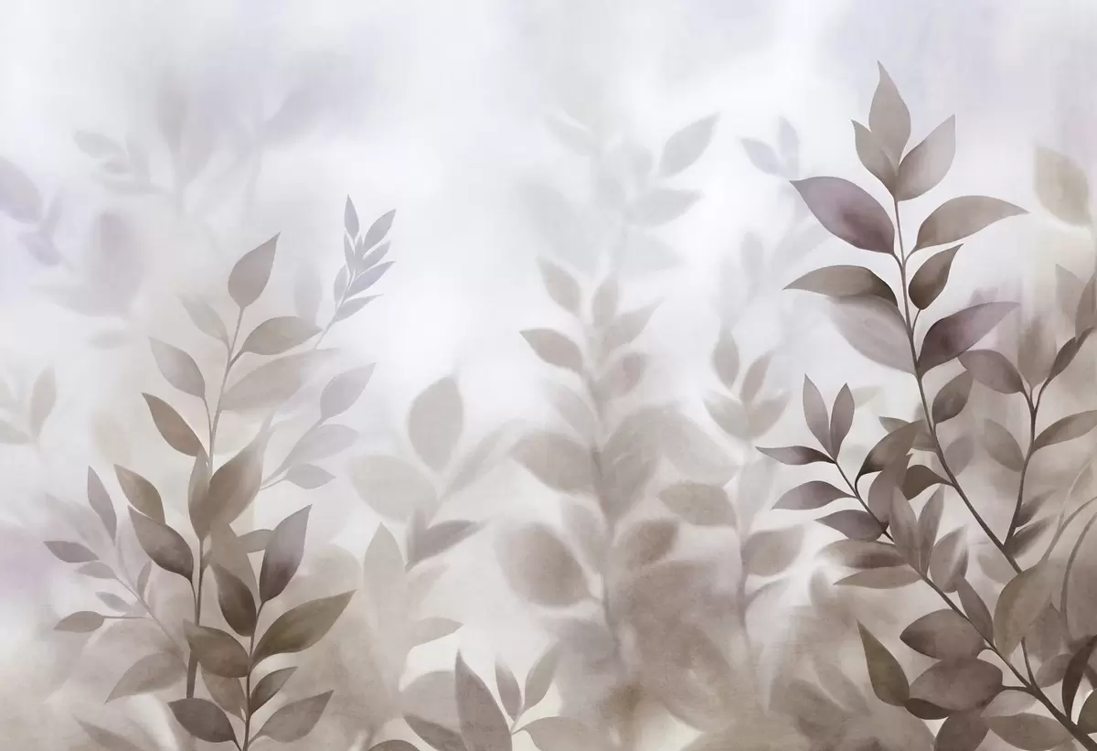 Fotobehang Delicate takken met gedempte bruine en beige bladeren, aquarelstijl, kunst met textuur N° w09750
