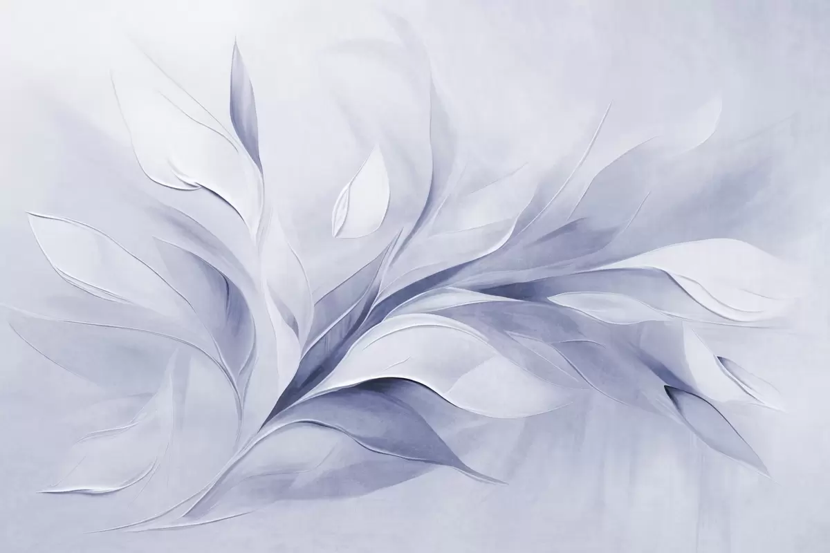 Fotobehang Abstracte schilderstijl met textuur van lichtblauwe en witte vloeiende bladeren N° w09765
