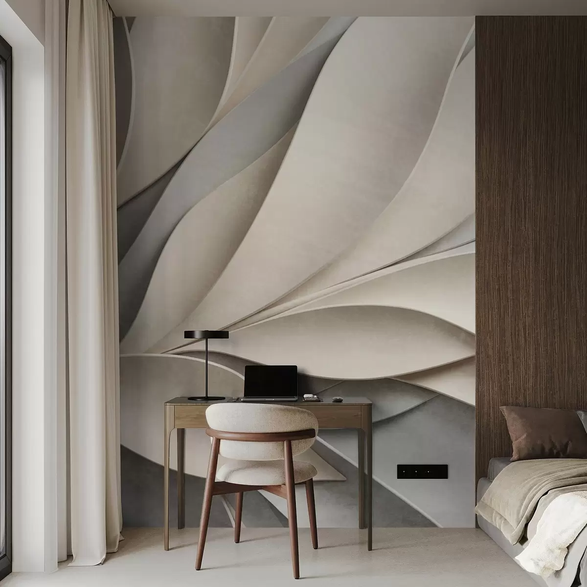 Fotobehang Abstracte bladeren in beige en grijs, gestructureerde moderne kunst N° w09769