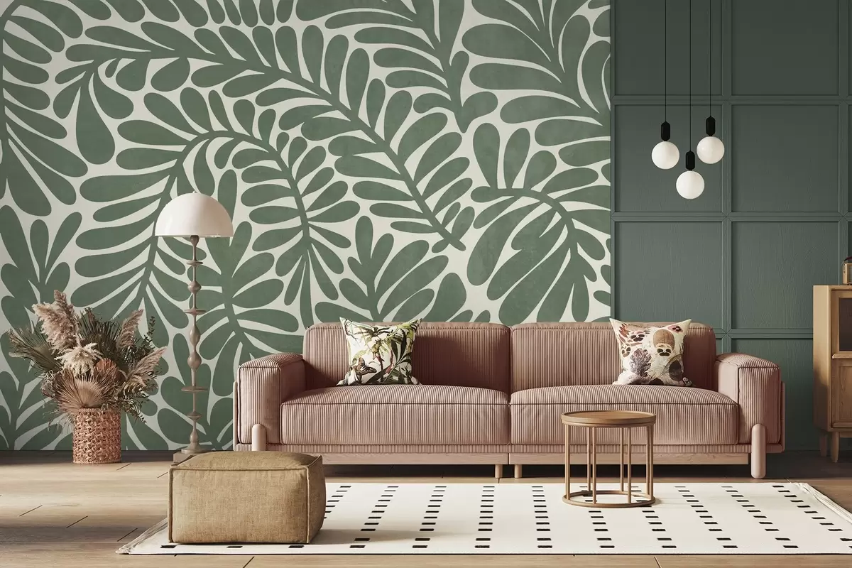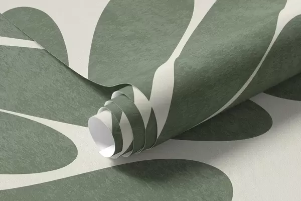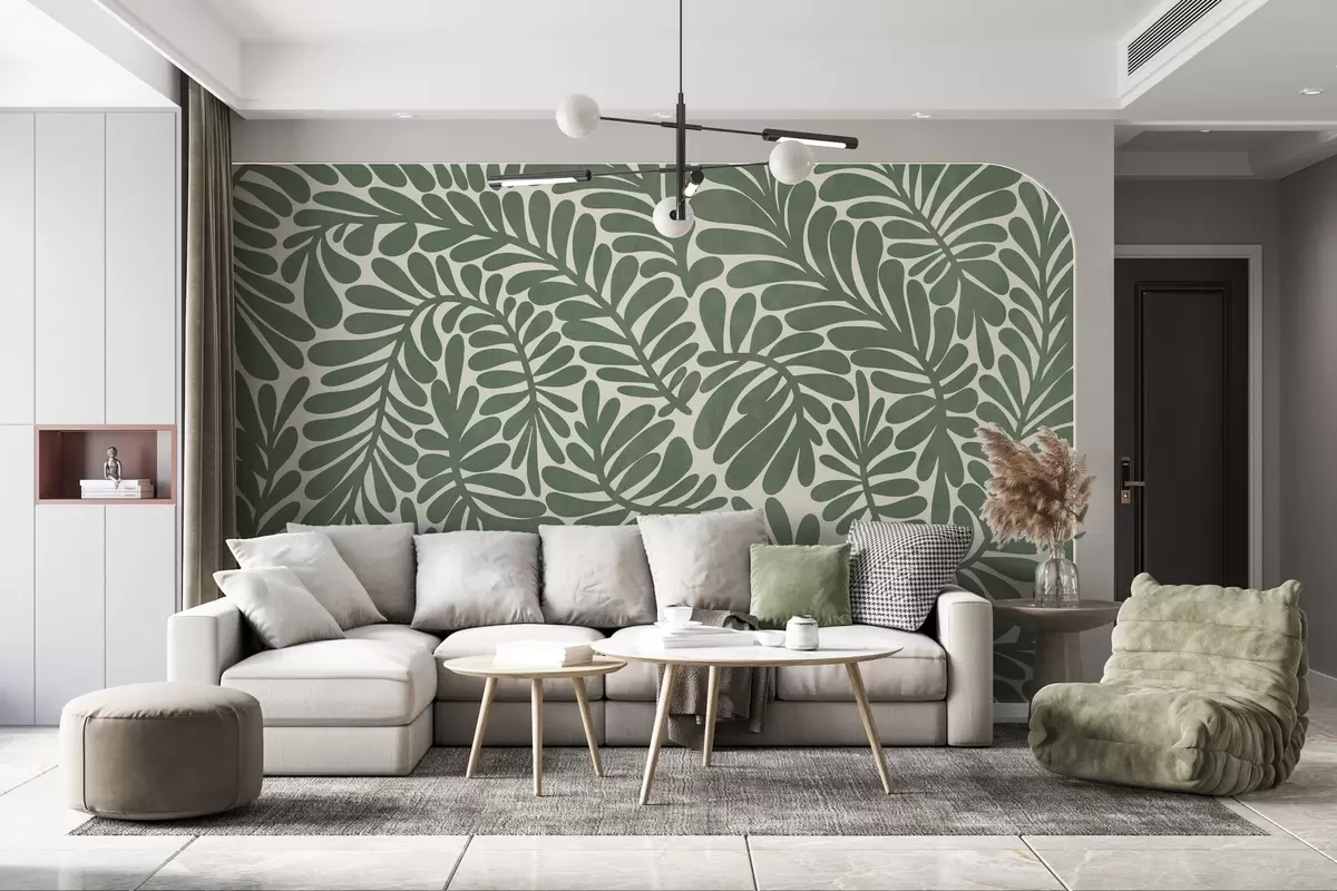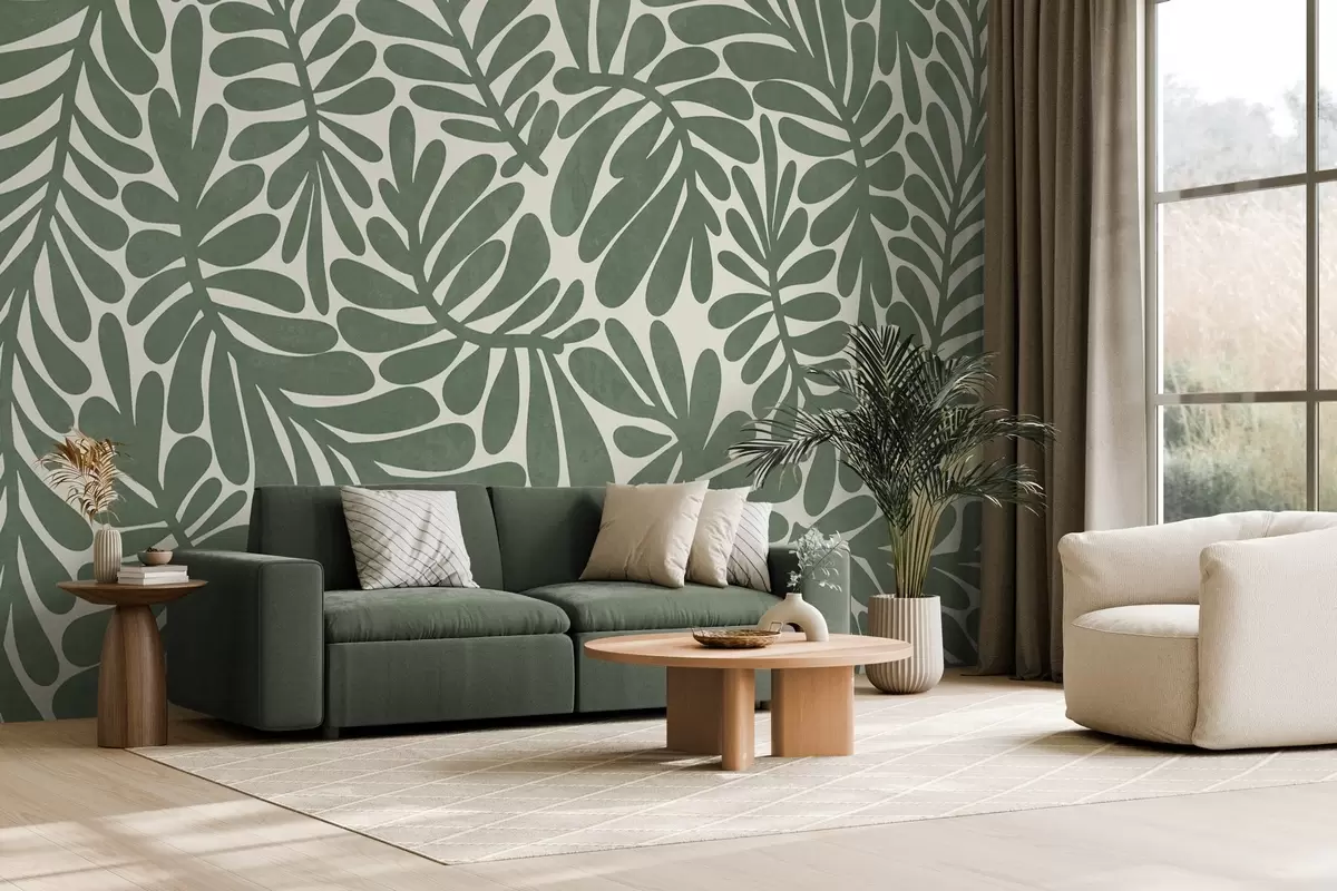 Fotobehang Gestileerde groene bladeren tegen een lichte achtergrond, kunst met textuur N° w09775v2
