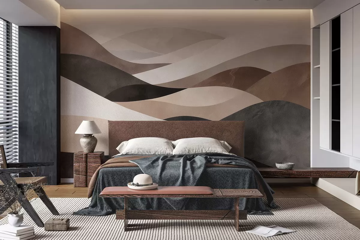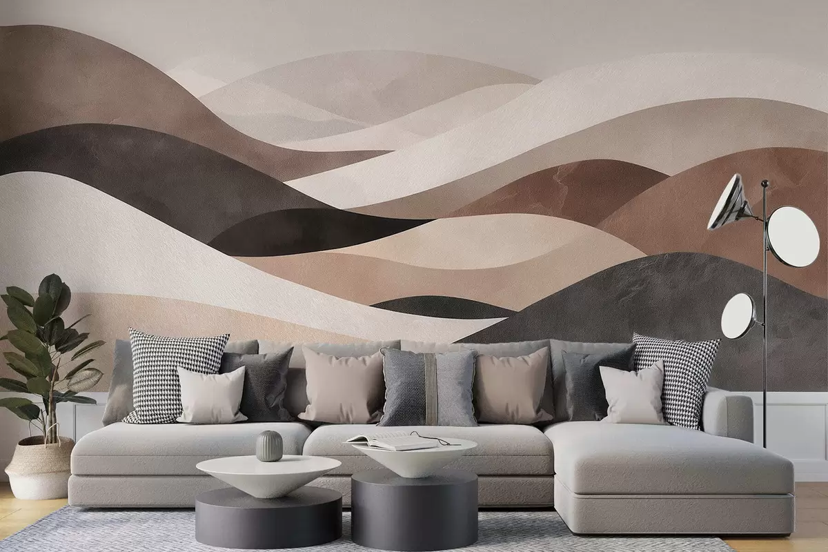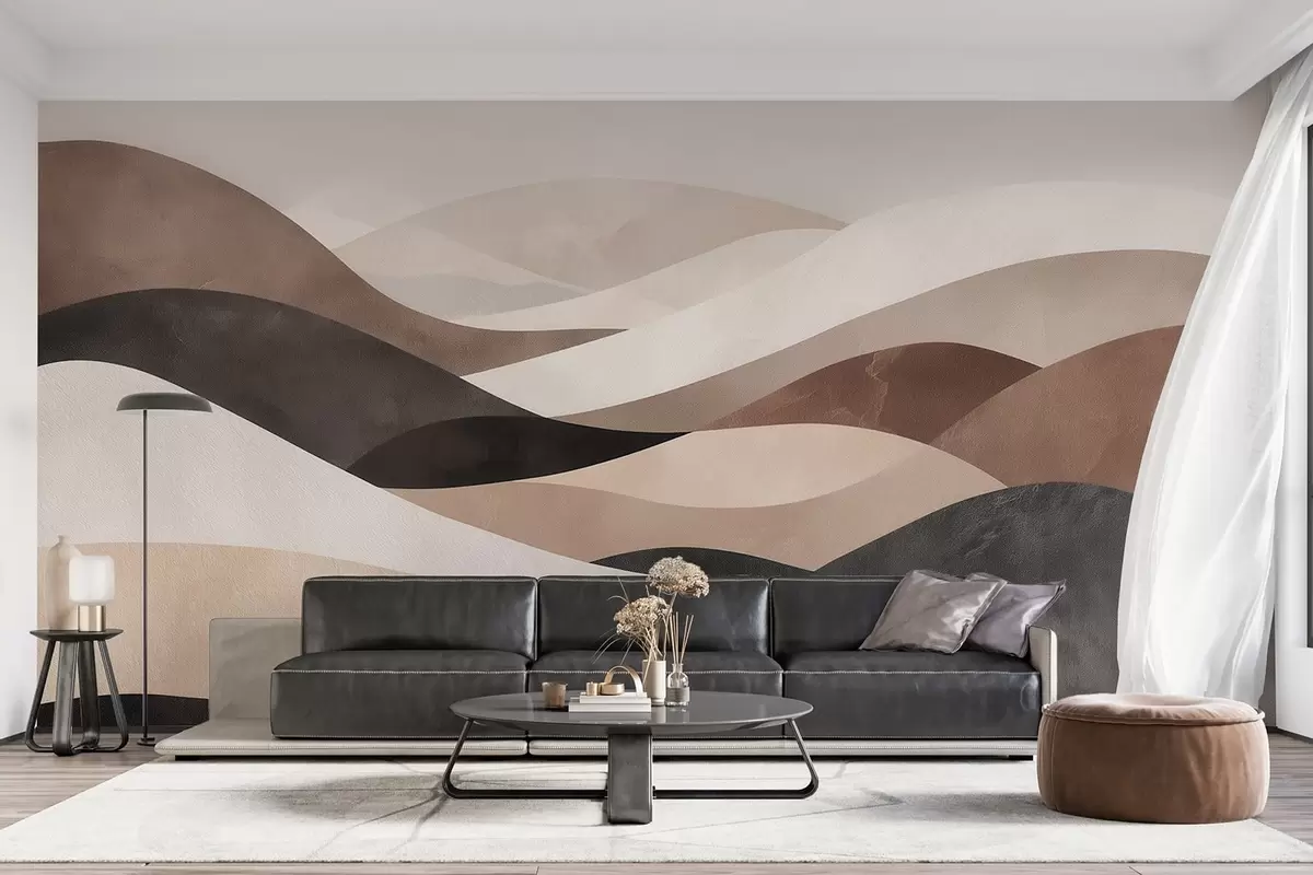 Fotobehang Abstracte golven in zandkleurige beige tinten N° w09792
