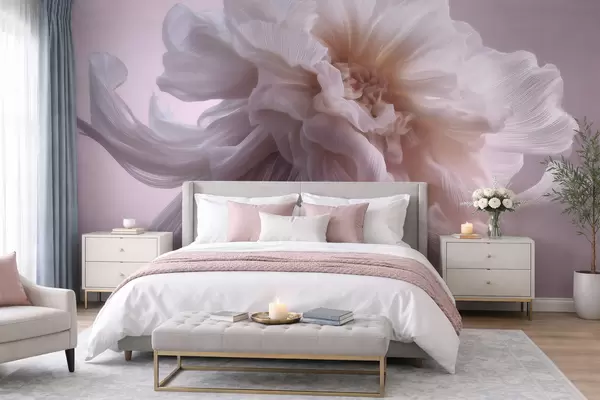 Fotobehang Volumineuze zijden bloem in zachte roze en beige tinten N° w09809