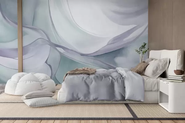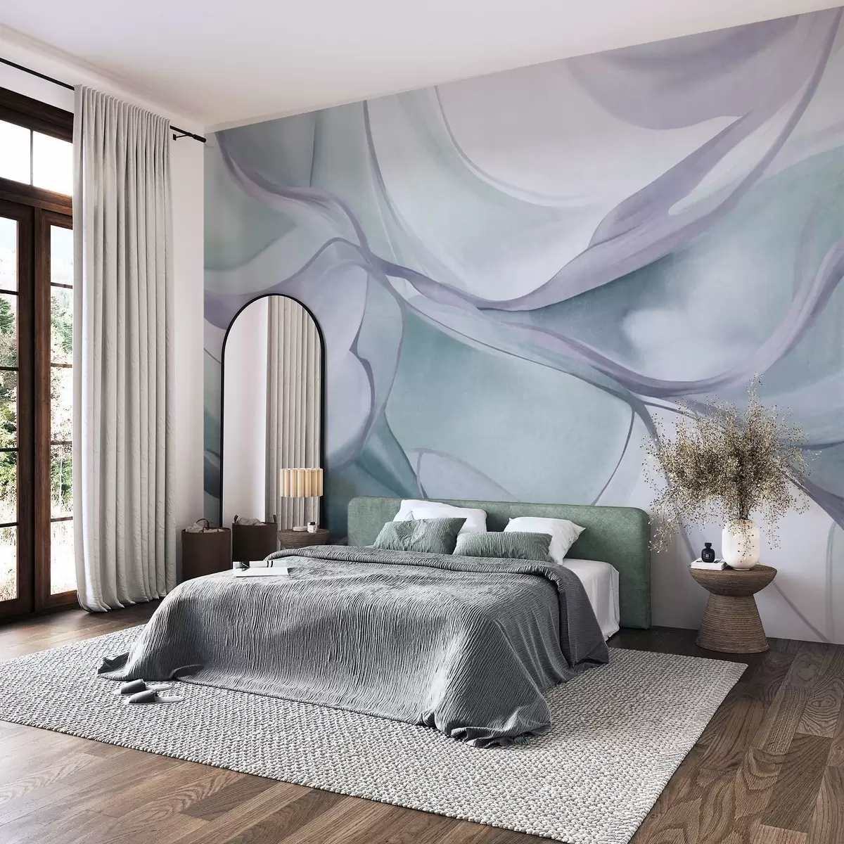 Fotobehang Abstracte, gestructureerde, vloeiende vormen in blauw- en grijstinten met fijne lijnen N° w09818v1